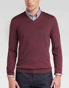 Sweater v neck hampir menyerupai sweater crew neck, hanya saja berbeda pada bagian lehernya yang menyerupai huruf V. Sweater v neck ini cocok untuk kamu gunakan ke acara formal maupun casual. Untuk tampil classy kamu bisa memadukan sweater ini dengan blazer dan gunakan celana jeans untuk tampil lebih santai dan casual. Sama seperti sweater crew neck, sweater v neck juga cocok dikombinasikan dengan pakaian apa saja, misal dengan celana training yang bisa kamu gunakan untuk pergi berolahraga.
